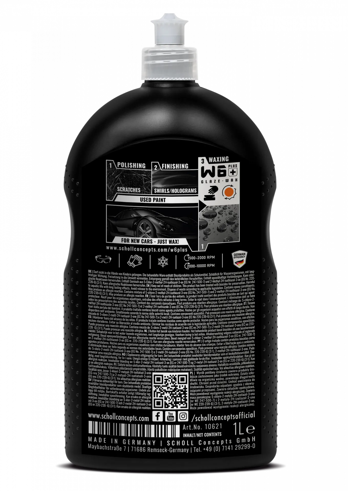 Bei Lacken mit starken Gebrauchsspuren empfehlen wir eine Lackvorreinigung mit einer SCHOLL Schleifpaste ("heavy" oder "medium" cut). Wir empfehlen grundsätzlich die manuelle Verarbeitung mit dem handlichen, schwarzen Applikations-Puck. Die Poliermittelrückstände einfach mit dem saumfreien, roten MicroPLUS Finishtuch abwischen. Bei der maschinellen Verarbeitung mit rotierenden oder exzentrischen Poliermaschinen sollte die Premium Versiegelung W6+ mit dem orangefarbenen SCHOLL Polierpad aufgetragen werden.